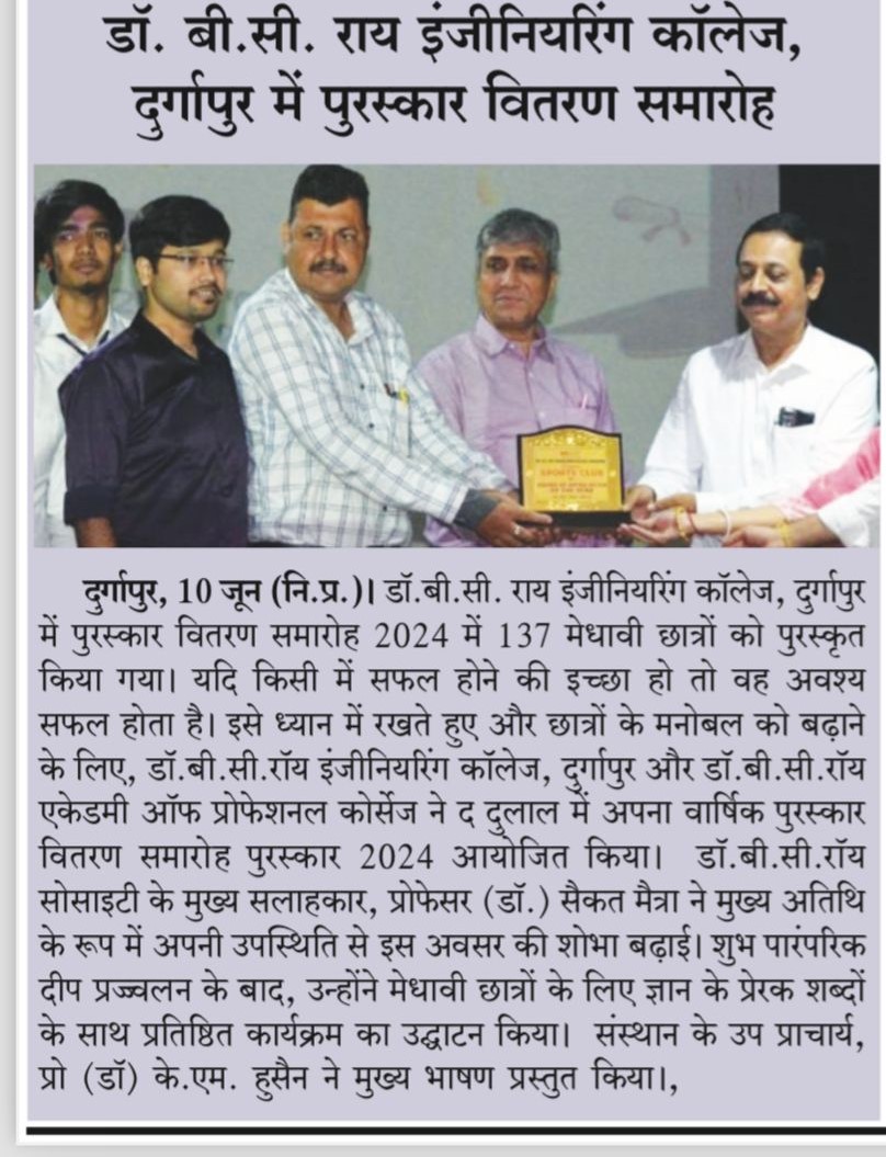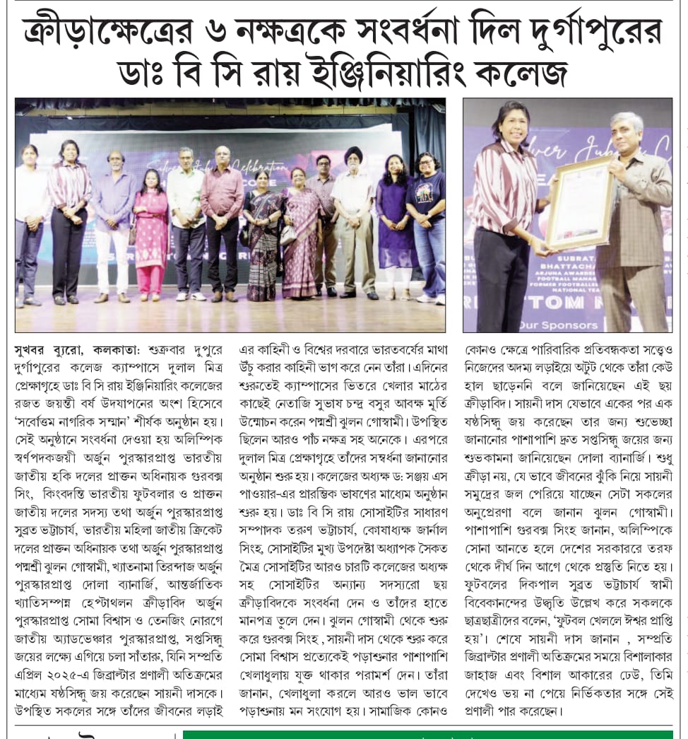 Dr. B. C. Roy Engineering College in Durgapur honored six outstanding sportspersons as part of its s