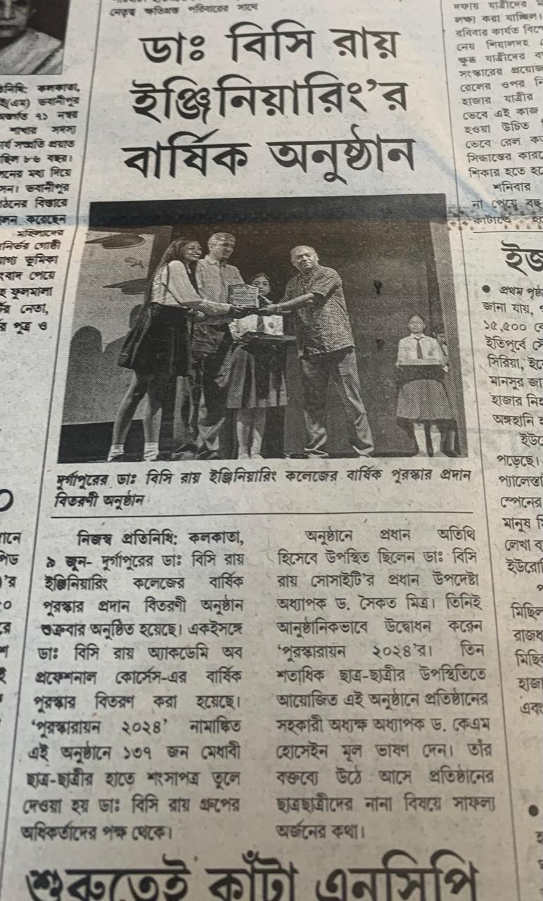 Prize Distribution Ceremony PURASHKARAYAN 2024 at Dr.B.C. Roy Engineering College, Durgapur Durga