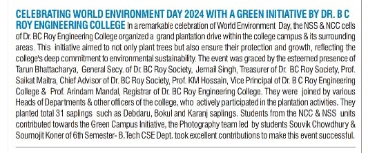 In a remarkable celebration of World Environment Day, the NSS and NCC cells of Dr. B C Roy Engineeri