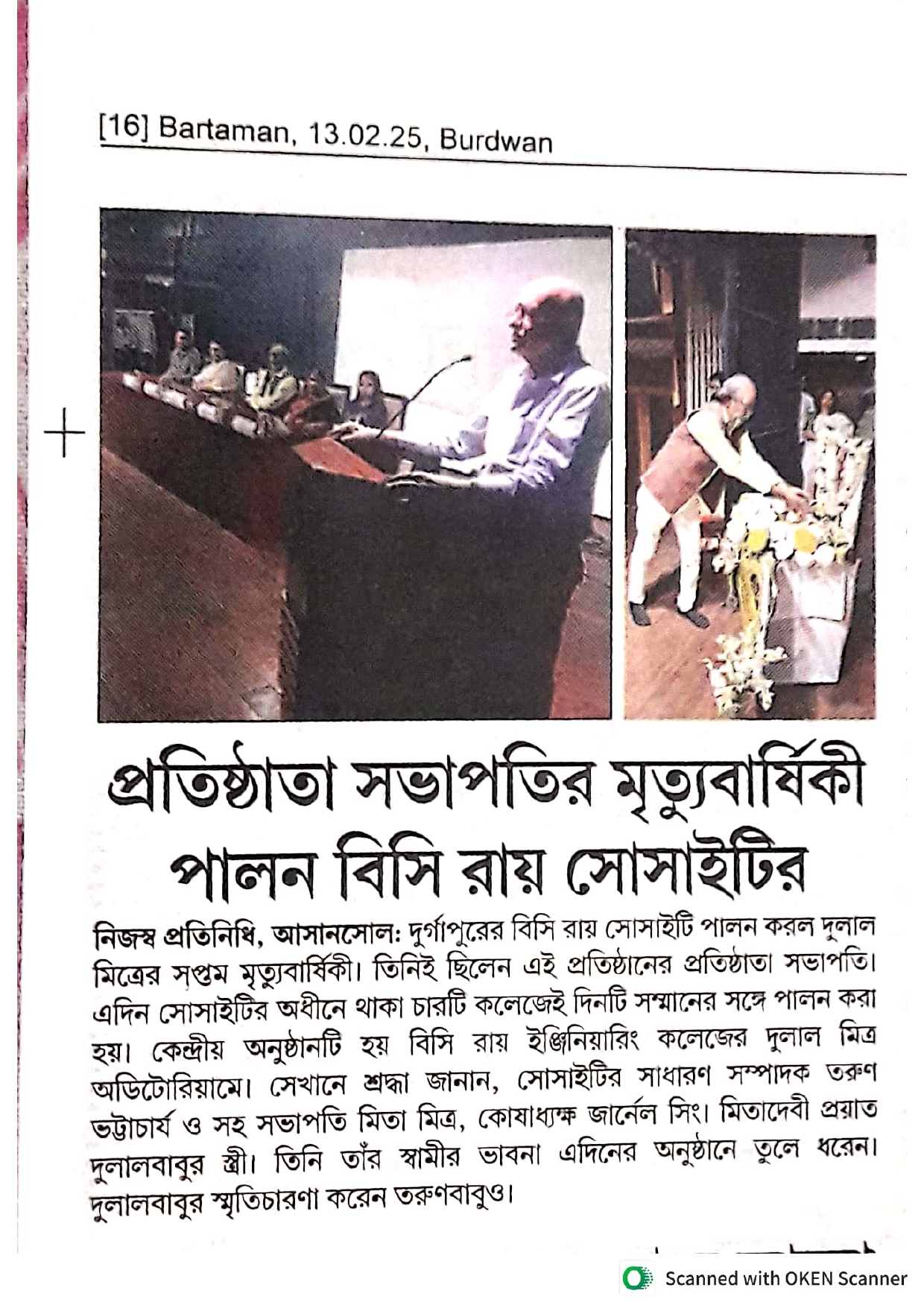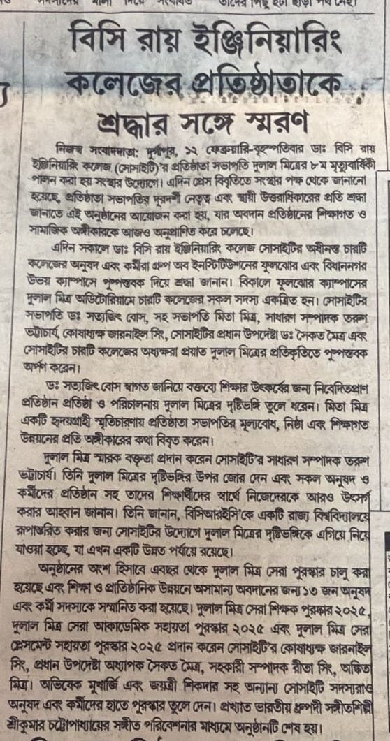 Dr. B. C. Roy Engineering College (Society) Observed its Founder President Dulal Mitra's 8