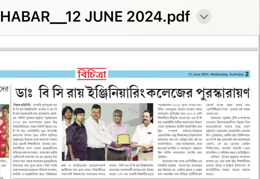 Dr. B. C. Roy Engineering College in Durgapur honored six outstanding sportspersons as part of its s
