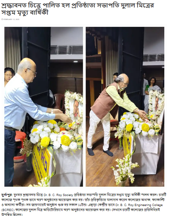Dr. B. C. Roy Engineering College (Society) Observed its Founder President Dulal Mitra's 8