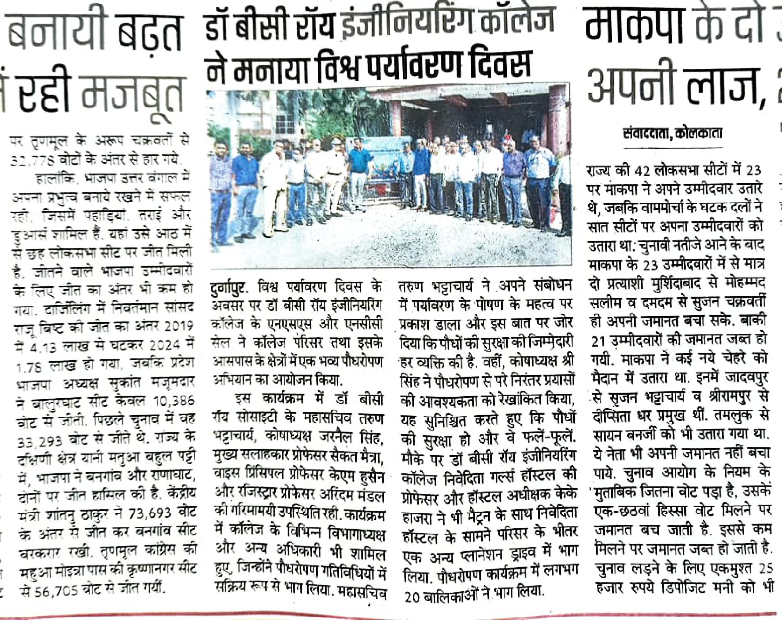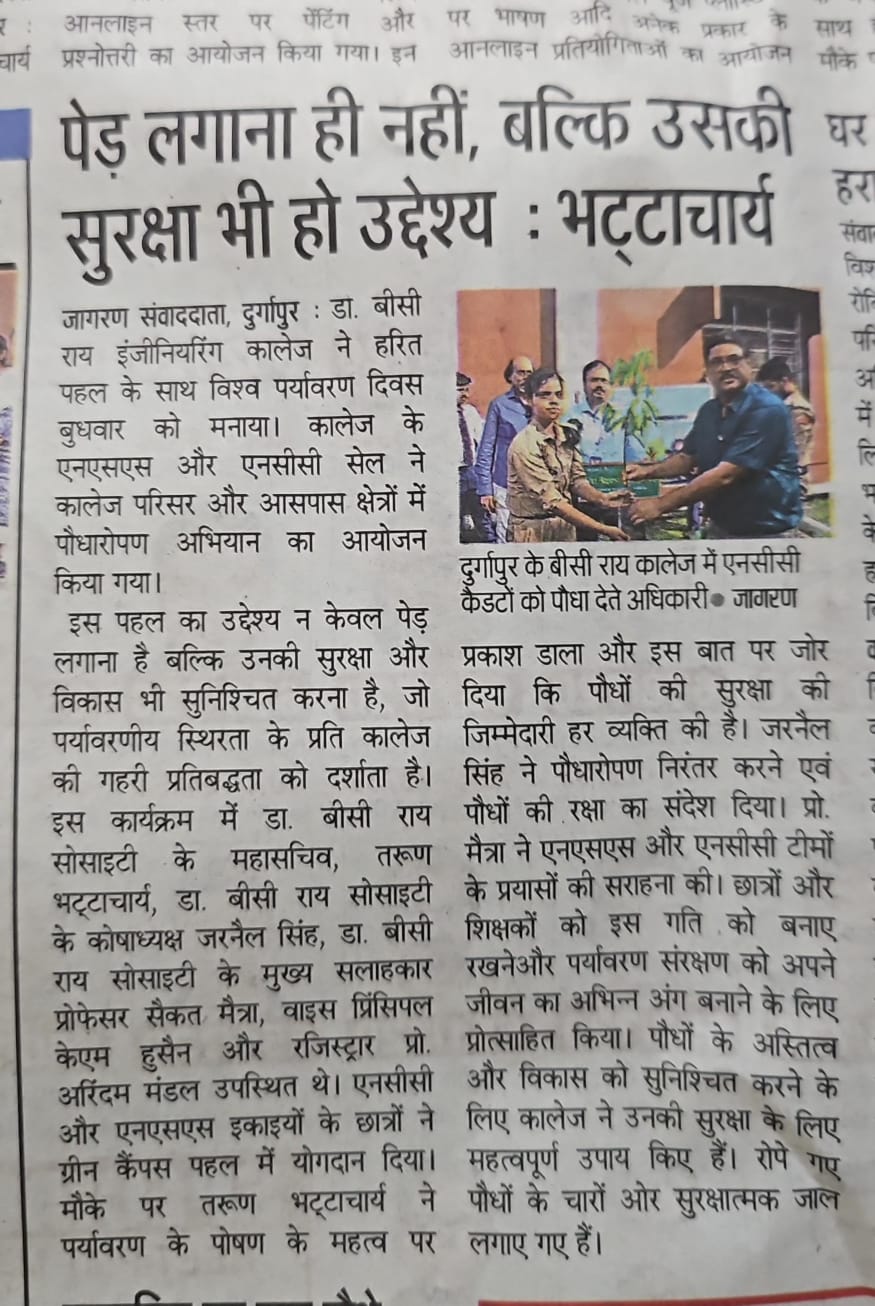 In a remarkable celebration of World Environment Day, the NSS and NCC cells of Dr. B C Roy Engineeri