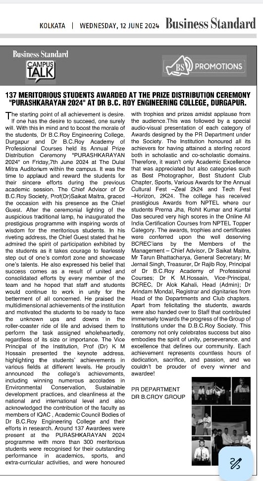 Prize Distribution Ceremony PURASHKARAYAN 2024 at Dr.B.C. Roy Engineering College, Durgapur Durga