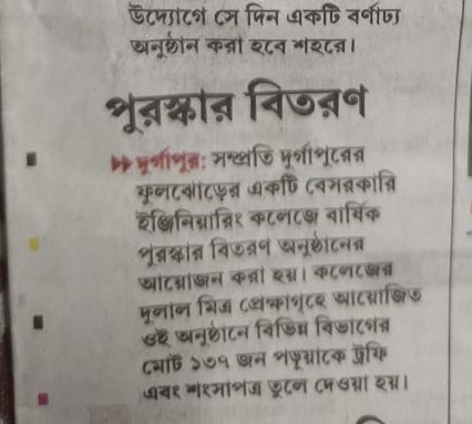 Interactive Plasma Exhibition at BCREC Published in Durgapur Darpan